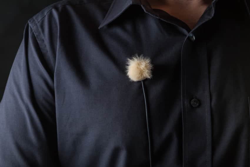 Lavalier microphones can also be protected using tiny wind muffs or windjammers, which are essentially small deadcat windscreens that you can get in a couple different colors to make them blend with the clothes you’re wearing.