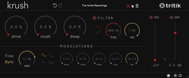 Krush is quite versatile since it can be used to add warmth, full blown distortion, fuzz, and even a bit-crushing effect, and best of all is that it allows for A/B testing which lets you compare two different settings without having to go back and forth between presets.