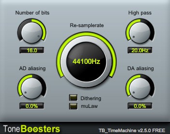 TimeMachine allows to simulate the effect of A/D and D/A aliasing, re-sampling, and bit reduction (both linear and mu-Law quantization).