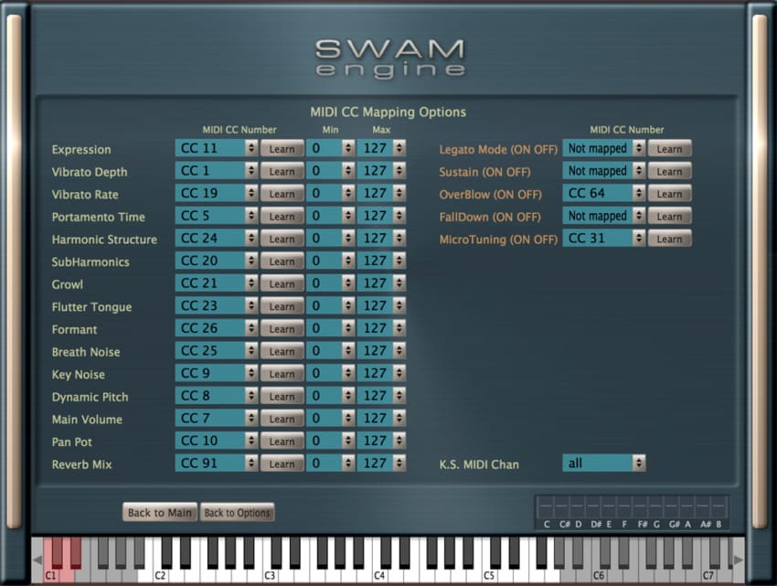 It has a beginner friendly GUI, with presets available in both its mixer and mapping window. It contains an adaptive legato engine which automatically adjusts interval speed depending on how you are playing.