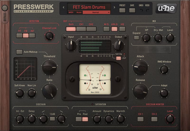 Presswerk also offers M/S processing, allowing you to compress the mid and side signals separately. You can also unlink the left and right channels and individually adjust their compression.