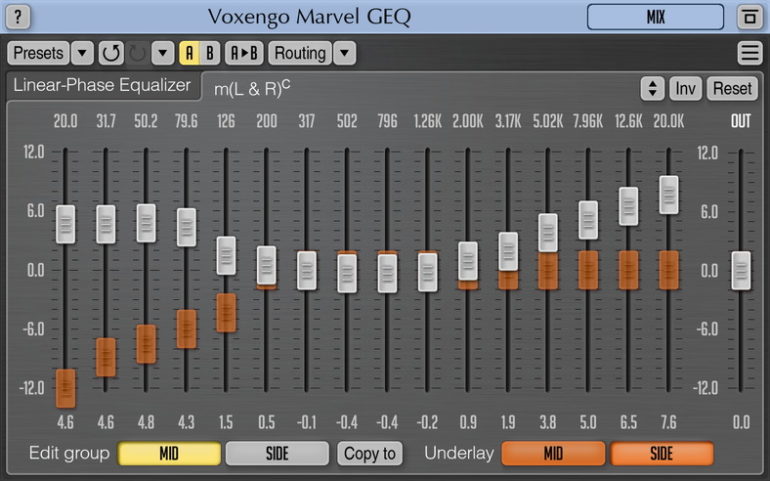 The beauty of the Marvel GEQ plugin is that it allows for some extremely quick EQ adjustments, both to single audio tracks as well as entire mixes, and it lets you set up different groups and swap between them to get different EQ configurations going.