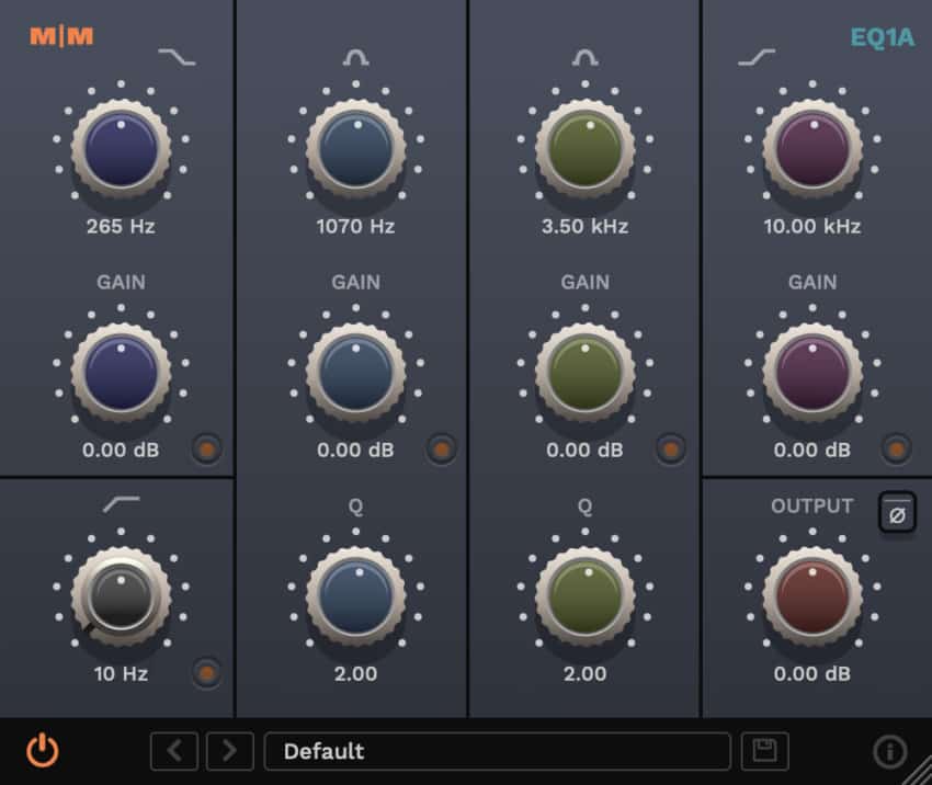The EQ1A is a super simple yet smooth analog-style EQ that is designed to introduce minimal sound coloration.