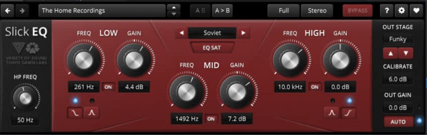 Character: SlickEQ definitely affects the sound by adding some- although very slight- coloration depending on which style of EQ (German, Soviet, American, or British) you select, and the built-in Saturation also warms up the sound very slightly when engaged.