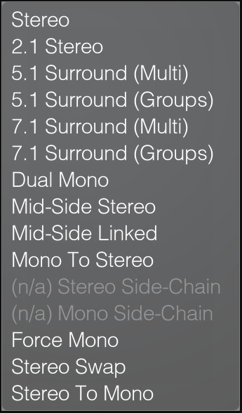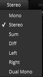 - Mono, stereo, left, right, diff, sum, and dual mono processing