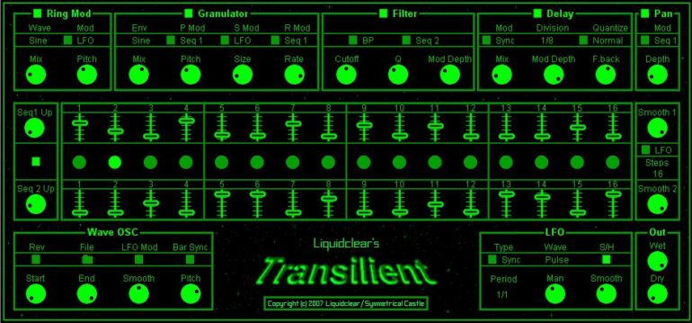 Transilient is a FSU/Glitch type multi-effect unit created by Liquidclear and designed to make strange and unusual new sounds, however it’s still pretty easy to use and control.