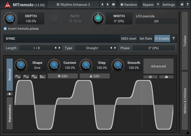 MTremolo provides a definitive tremolo sound with an adjustable shape, including editable waveforms and harmonics.