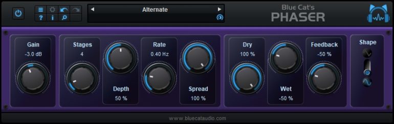 Blue Catās Phaser is modeled after the vintage analog phaser circuits but with the precision on modern technology and digital processing.