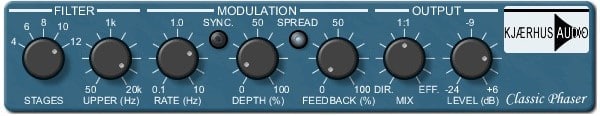 You can apply up to 32 phasing stages or create a subtle phasing effect with wet and feedback parameters.