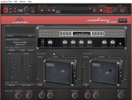 The free version comes with a 5-channel guitar amp and two different cabinets where you can adjust the mic placement to control the tone.