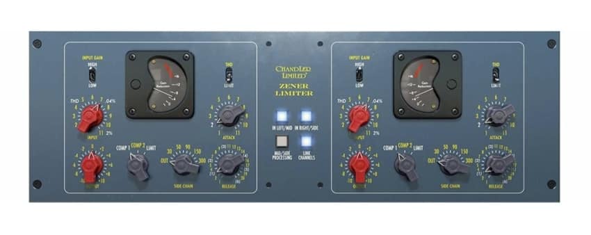 Chandler Limited Zener Limiterâs interface has a realistic hardware look. Itâs a stereo limiter with the ability to switch between 3 different types of dynamic compression. Keeping with the times, Softube have also included important modern features, such as sidechain capability, M/S processing, and a stereo linking option.