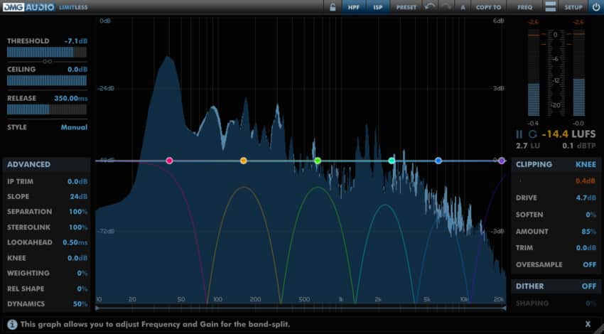 Next up, we have the most aptly named limiter you will find on the market. DMG Audioâs limitless is a multi-band limiter, in which the word versatile doesnât do justice. If you need an elite level multi-band, look no further, this is the one!