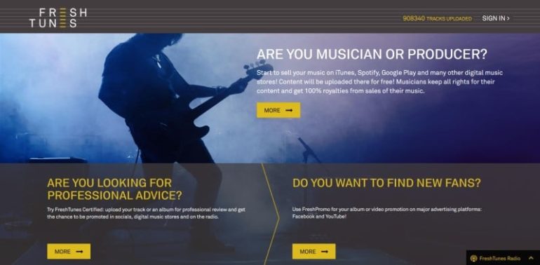 Fresh Tunes is very similar to Amuse in the sense that they don’t charge either fees or commissions.