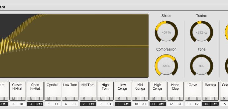 Sitala also offers sixteen sample slots and each of them features six control parameters; Tone, Shape, compression, Tuning, Volume and pan.