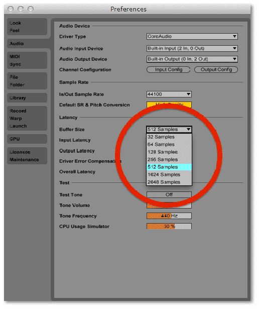 - In the Audio Setup tab, simply choose your buffer size from the drop-down window labeled Device Block Size.