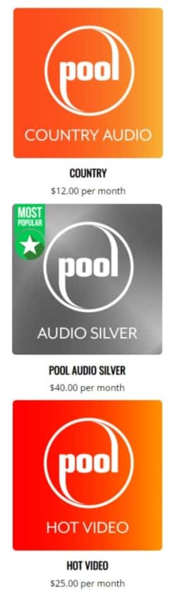 If you decide to go for a pool of just one genre, it will cost you about $12/month. They also have pools that include various genres and those sell for $40/month, and lastly, Video pools sell for $25/month.