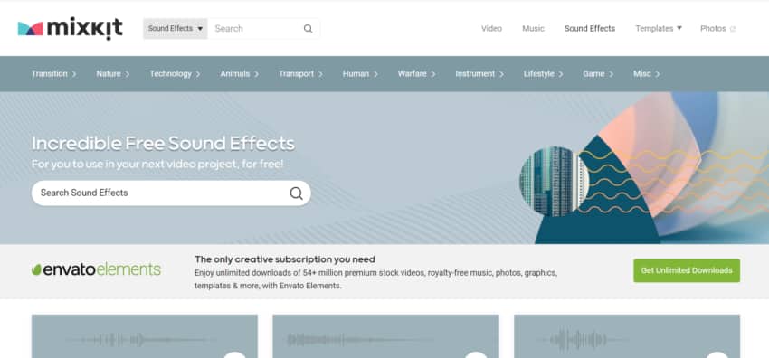 Next up on this list of the best free DJ sound effect sites is MixKit, a site providing just about anything royalty-free that you could need for a creative project. It’s got a very user-friendly interface that makes it extremely easy to find what you are looking for, with a handy preview feature allowing you to test sounds out before you download them.