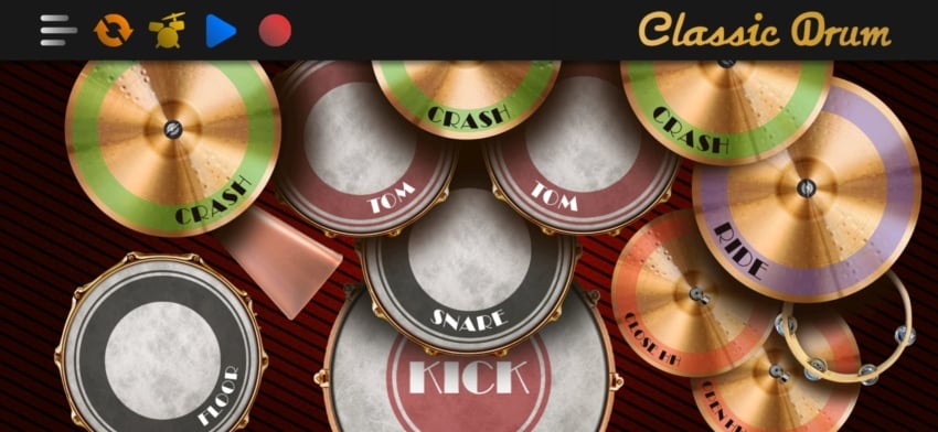 Classic drum is made by the same developers of Real Drum and looks identical in every way. It even costs the same to upgrade to the premium version ($1.99/mo.) to get rid of the ads and to unlock all the loops and the metronome.