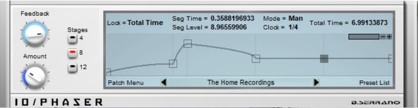 After creating and adjusting the stages to get the sound you want, you can also adjust the total phasing effect time, or you can click on the different stages and adjust each of their durations individually by clicking at “Seg Time”. You can also change the feedback and control the total amount of the effect you want.