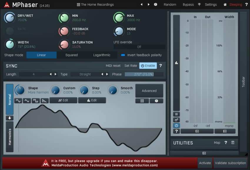 MPhaser provides an adjustable oscillator shape allowing great flexibility, up to 100 filters, saturation, a harmonics generator, Sine, Triangle, Rectangle and Saw shapes, which can all be adjusted using the “Custom”, “Step” and “Smooth” controls to fine-tune the effect.