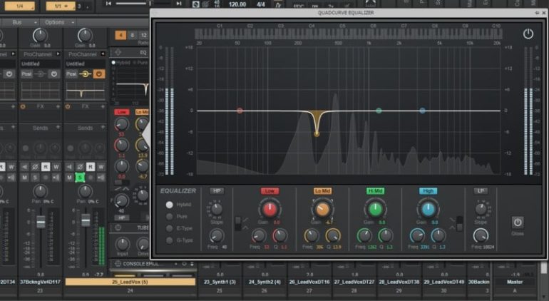 Step 1: Use a parametric EQ with a semi-narrow “Q”.