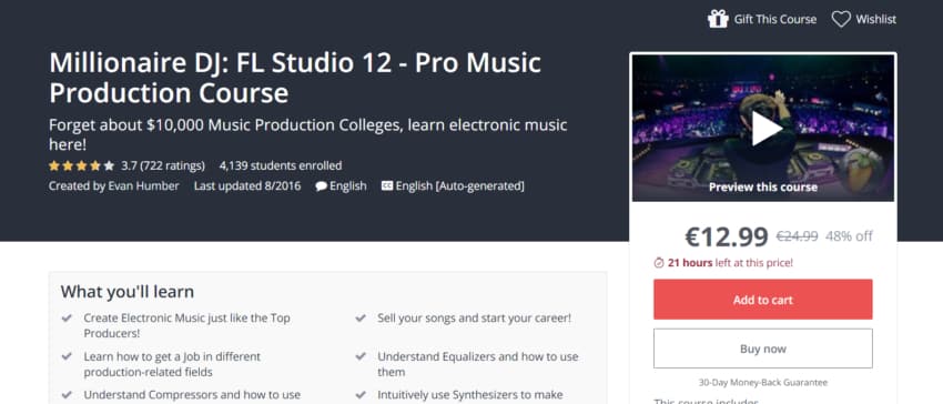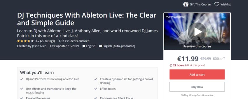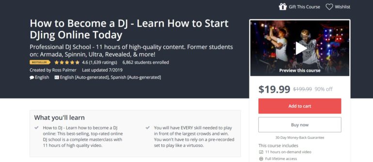This is the best-selling DJ course on Udemy. It’s a complete masterclass with over 11 hours of content, which is a lot longer than most other courses.