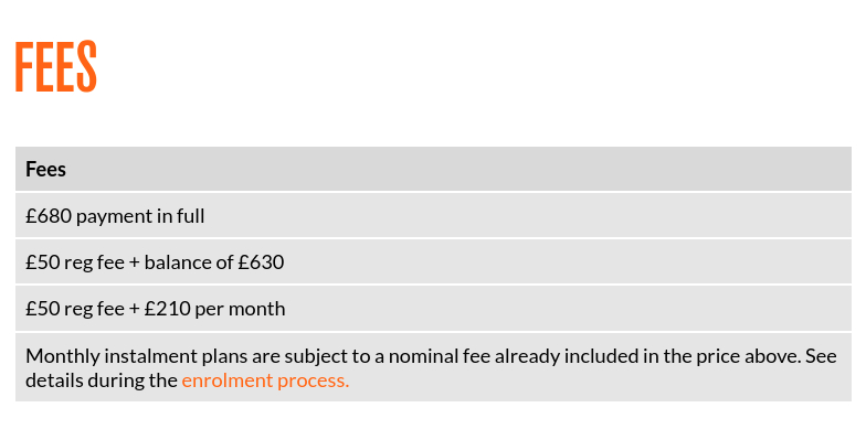 As far as the pricing goes, both courses will set you back about $800, or ÂŁ680, and they have specific starting dates (generally, every trimester).