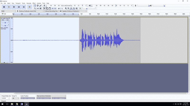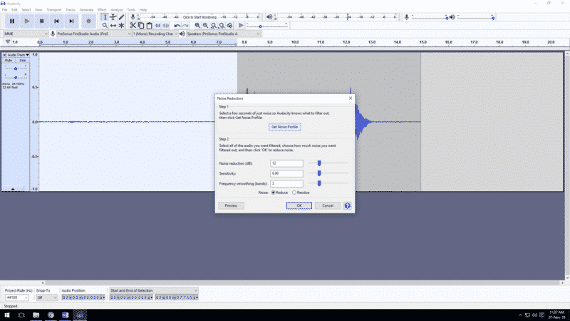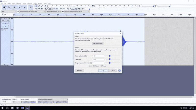 Now that Audacity has created the noise profile, it’s time to instruct it to remove it from that specific track;