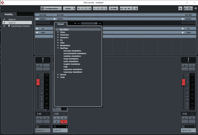 - Go to the mixer on the right and click on the “+” sign on the specific track you want to process.