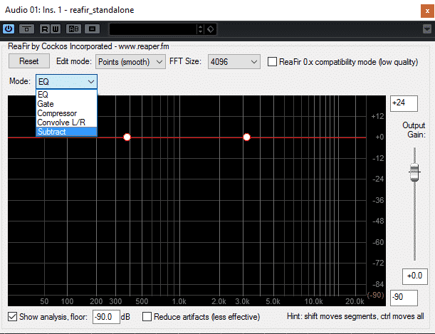 After this, you should reproduce the part of the track where only the background noise can be heard, which REAfir will use to create the noise profile.