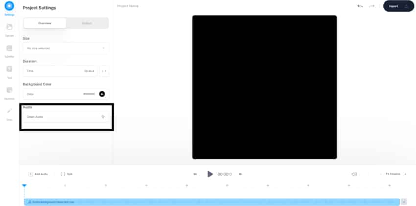 - Go to the Audio Editing tool by clicking on “Audio” on the upper toolbar.