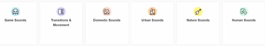As far as sound effects go, you can choose from Game Sounds, Transition & Movement, Domestic Sounds, and more, all the way to Industrial Sounds, as well as Futuristic ones.