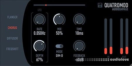 Audio Damage also have a courageous chorus on offer, the AD040 Quatromod. Another multi-modulator, its chorus section is an evolution of their much-lauded Fluid plug-in.