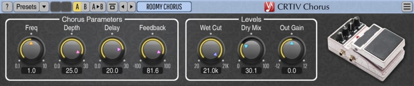Next up, we have the folks at Voxengo and their CRTIV Chorus effect. This plug-in sounds particularly nice on guitars, electric piano, and vocals. Its capable of both delicate duplications and watery oceanic oscillations.