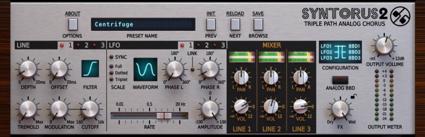 Next on the list, we have D-16 Group with SYNTORUS 2. This plug-in is based on the effect modules of analog synthesizers such as the Solina String Ensemble (Air, Tangerine Dream, New Order), the Elka Synthex (Stevie Wonder, Duran Duran, Jean Michel Jarre), and the Roland Juno-106 (The Prodigy, Depeche Mode, Fatboy Slim).