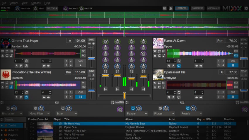 Mixxx can also be integrated with iTunes and Traktor libraries, allowing you to drop fresh tracks from both of them into your mix.
