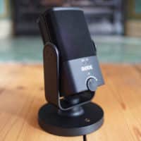 The Rode NT USB Mini is a very small microphone designed to sit on your desk (it can be attached to a boom arm if you want, however).