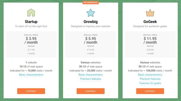 You can choose between the Startup, GrowBig and GoGeek plans.