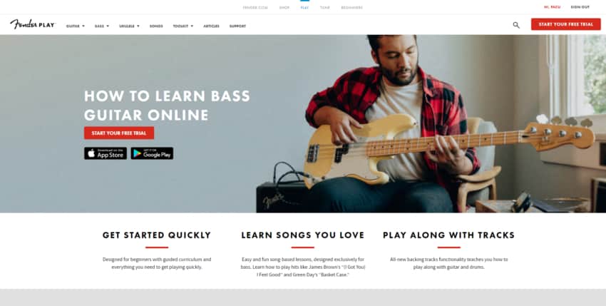 Now, the information on Fender Play about learning to play the Bass is definitely geared towards absolute beginners, since they cover all the basics, as well as some theory, riffs, and provide you with a couple exercises to practice.
