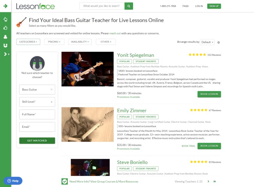 LessonFace is completely different from all the sites I listed so far because it’s not just one teacher offering courses or memberships, but rather a service where you can book one-on-one lessons with the teacher of your choice.
