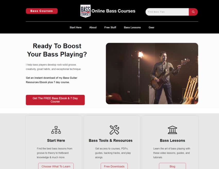 Here you will find quite the number of free lessons that cover everything a that beginner who is just starting out should know, like; Technique, Theory, Bass Lines, Reading, Fretboard Knowledge, Groove & Timing, and the Mindset that you should have.