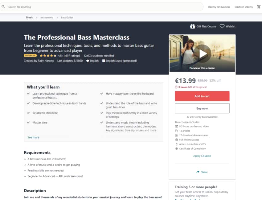 Udemy isn’t just a great website to learn to play the Bass, but actually to learn anything you want, such as; other musical instruments, marketing, programming, and more.