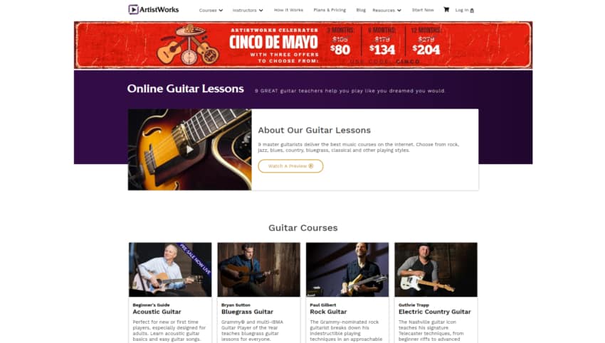 I already mentioned ArtistWorks in my other post about the best sites to learn how to play the piano, which you should definitely give a read as well, and it’s a great site to learn to play multiple instruments, not just guitar.