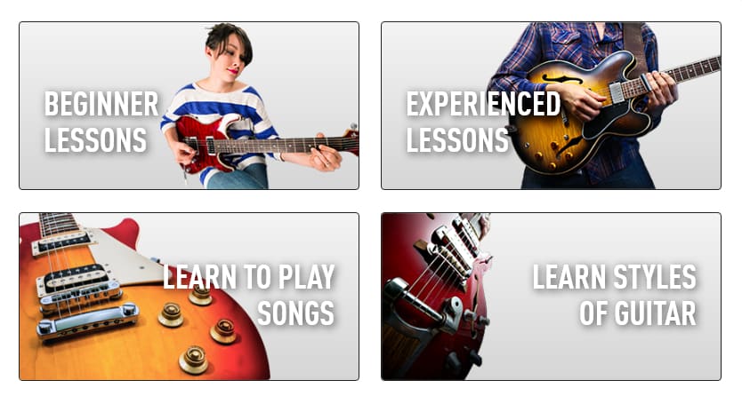 Once you log in you will be able to see the different kinds of lessons available, such as; Beginner Lessons, Experienced Lessons, Learn to Play Songs, and Learn Styles of Guitar.