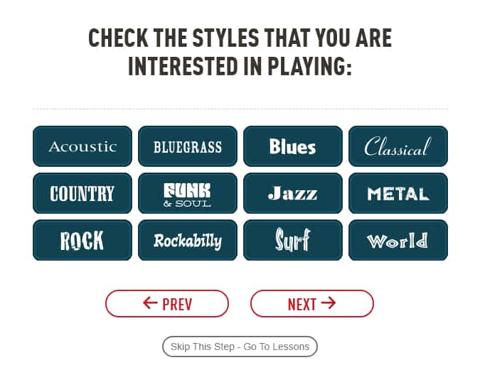Once you sign up with Guitar Tricks you will be asked a series of questions that will determine what courses you’ll be recommended.
