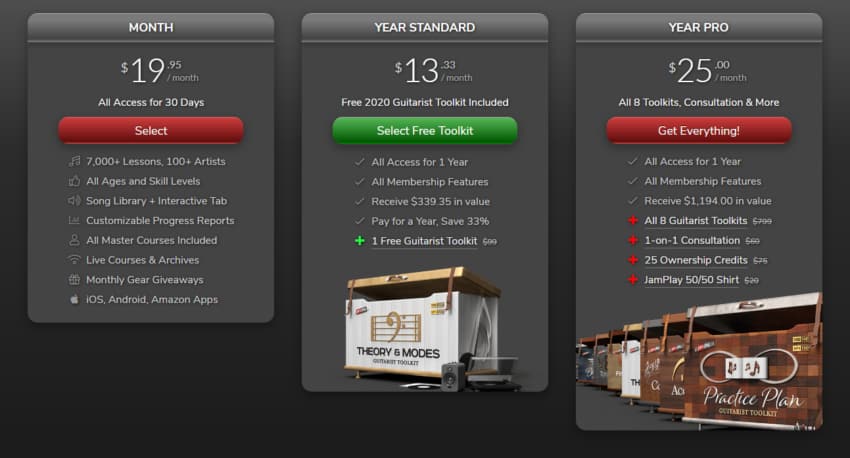 As far as the price goes, Guitar Tricks costs $19.95/mo., or you can pay $179 per year, plus the yearly subscription comes with some extra perks.
