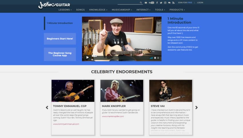 If you are a beginner or intermediate who wants lessons that are to the point and easy to follow, then Justin Guitar might be just for you.