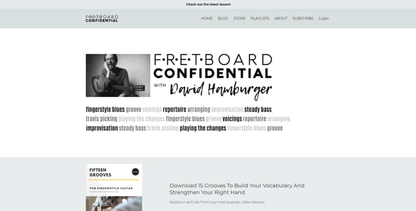 On his website, you’ll find a lot of information on how to play the guitar, mostly on Blues, Jazz, FIngerstyle, and Swing.