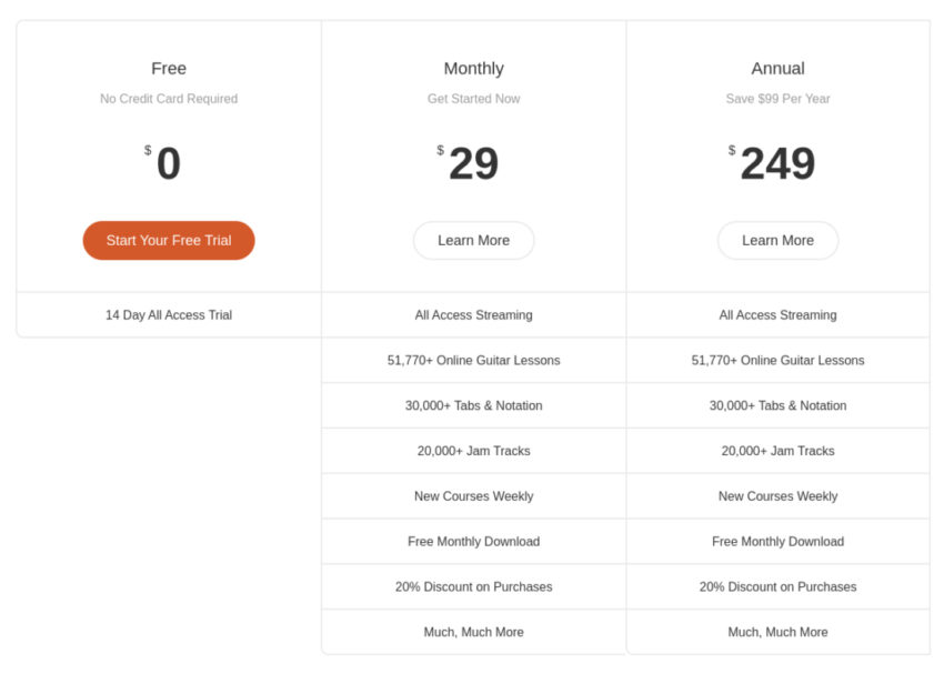 You can still sign up for a 14-day Free trial where you can see if Guitar Tricks really is for you, which it probably will be, because they offer such a huge number of courses on almost any genre in existence, and more often than not, you will find something that suits your needs.
