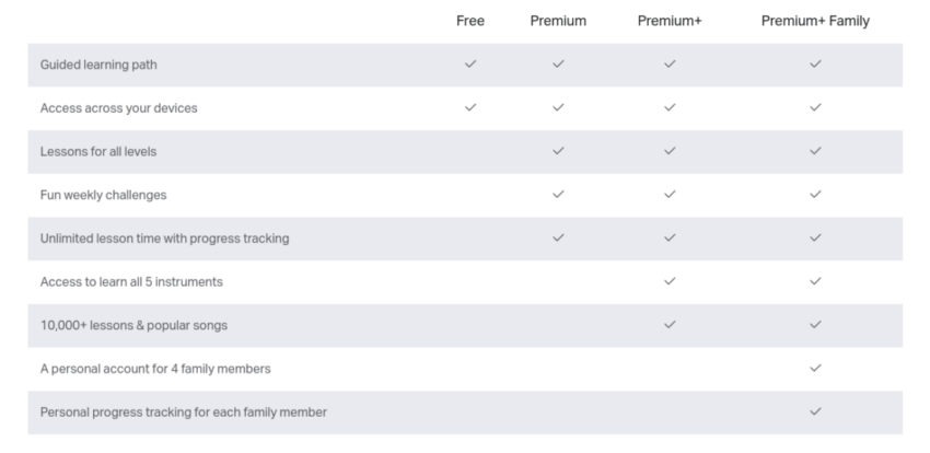 With the app, you will have access to a couple of free lessons, but when you upgrade to the Premium plan, that’s where you’ll get access to a huge number of courses and lessons, as well as songs to play through, and a lot more.